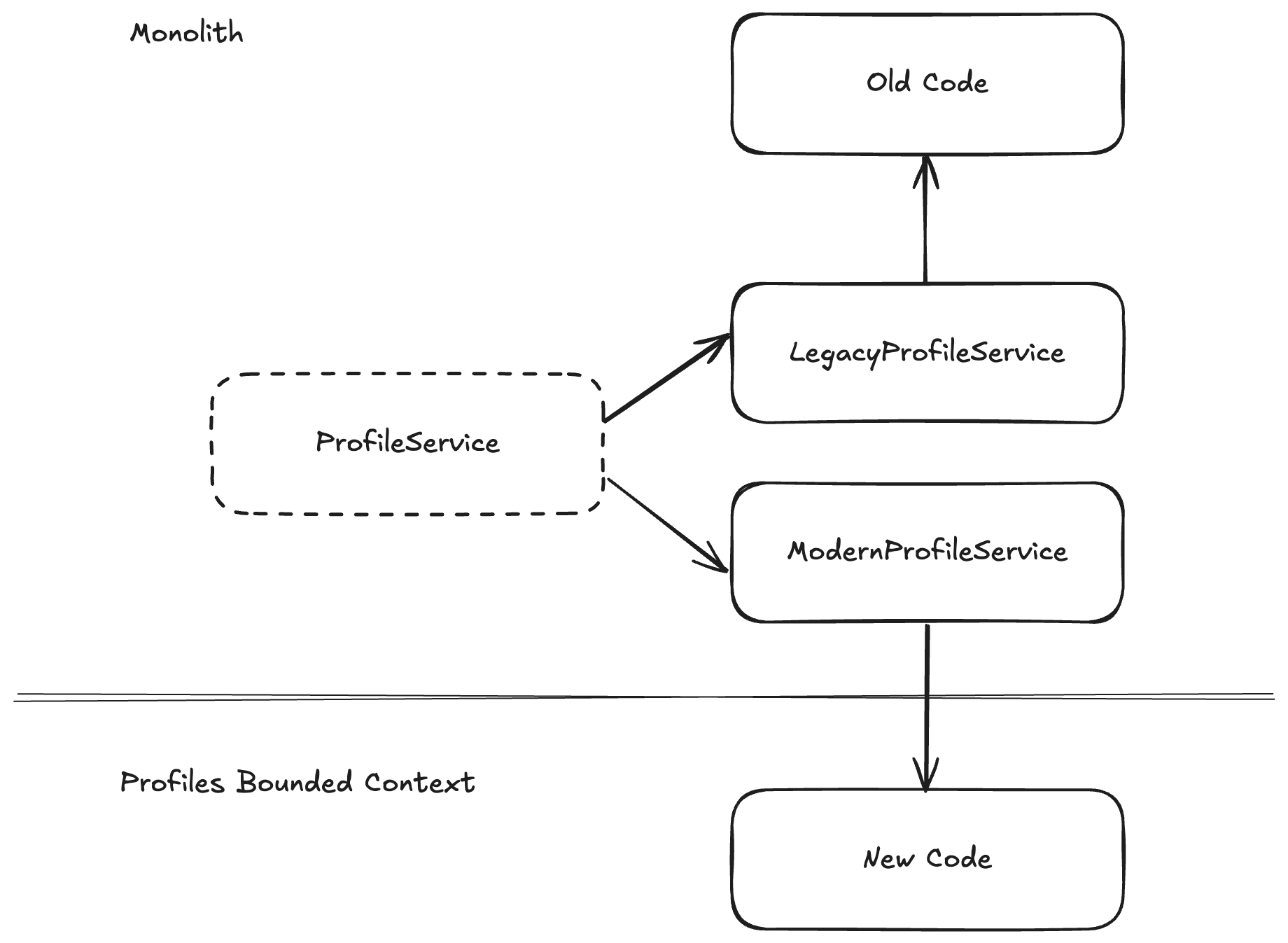 final class CompositeProfileService implements ProfileService{ public function __construct( private readonly LegacyProfileService $legacy, private readonly ModernProfileService $modern, private readonly FeatureFlagService $flags ) {}